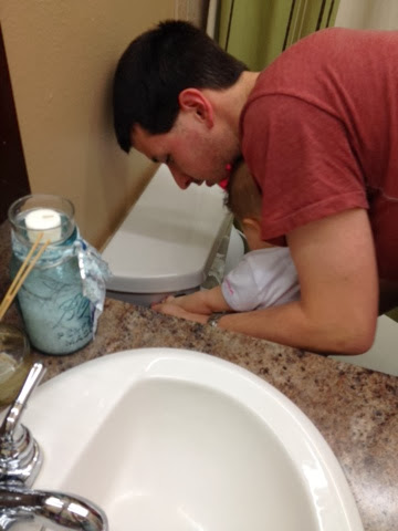 Daddy let her wash her hands (aka swish them around in the water while), and helped her dry them on the towel!